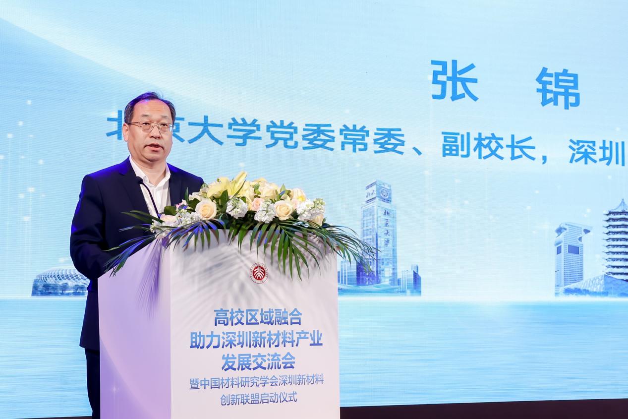2月15日下午,高校区域融合助力深圳新材料产业发展交流会暨中国材料研究学会深圳新材料创新联盟启动仪式在深圳举行。本次大会由北京大学深圳研究生院、北京大学材料科学与工程学院联合主办,邀请了政、企、学三界代表参加。中国科学技术协会中国材料研究学会秘书长张增志,深圳市科学技术协会党组书记、驻会副主席林祥,深圳市科技创新委员会高新技术处副处长蒋斌,深圳理工大学(筹)材料科学与工程学院名誉院长成会明院士,深圳大学材料学院彭孝军院士,南方科技大学创新研究院院长俞书宏院士,香港城市大学张华教授,黑龙江省石墨谷产业集团股份有限公司董事长方振辉,贝特瑞新材料股份集团有限公司董事长贺雪琴,深圳市星源材质科技股份有限公司CEO廖振波,先健科技(深圳)有限公司研发副总裁李安宁,清华大学深圳国际研究生院副院长康飞宇,哈尔滨工业大学(深圳)材料科学与工程学院院长李明雨,南方科技大学材料科学与工程系主任李江宇,深圳大学材料学院院长王雷,北京大学党委常委、副校长,深圳研究生院院长张锦院士以及学校相关职能部门负责人,材料学院师生代表等共计150余人参加大会,共商材料学科发展大计。会议由北京大学材料科学与工程学院党委书记、院长邹如强主持。
