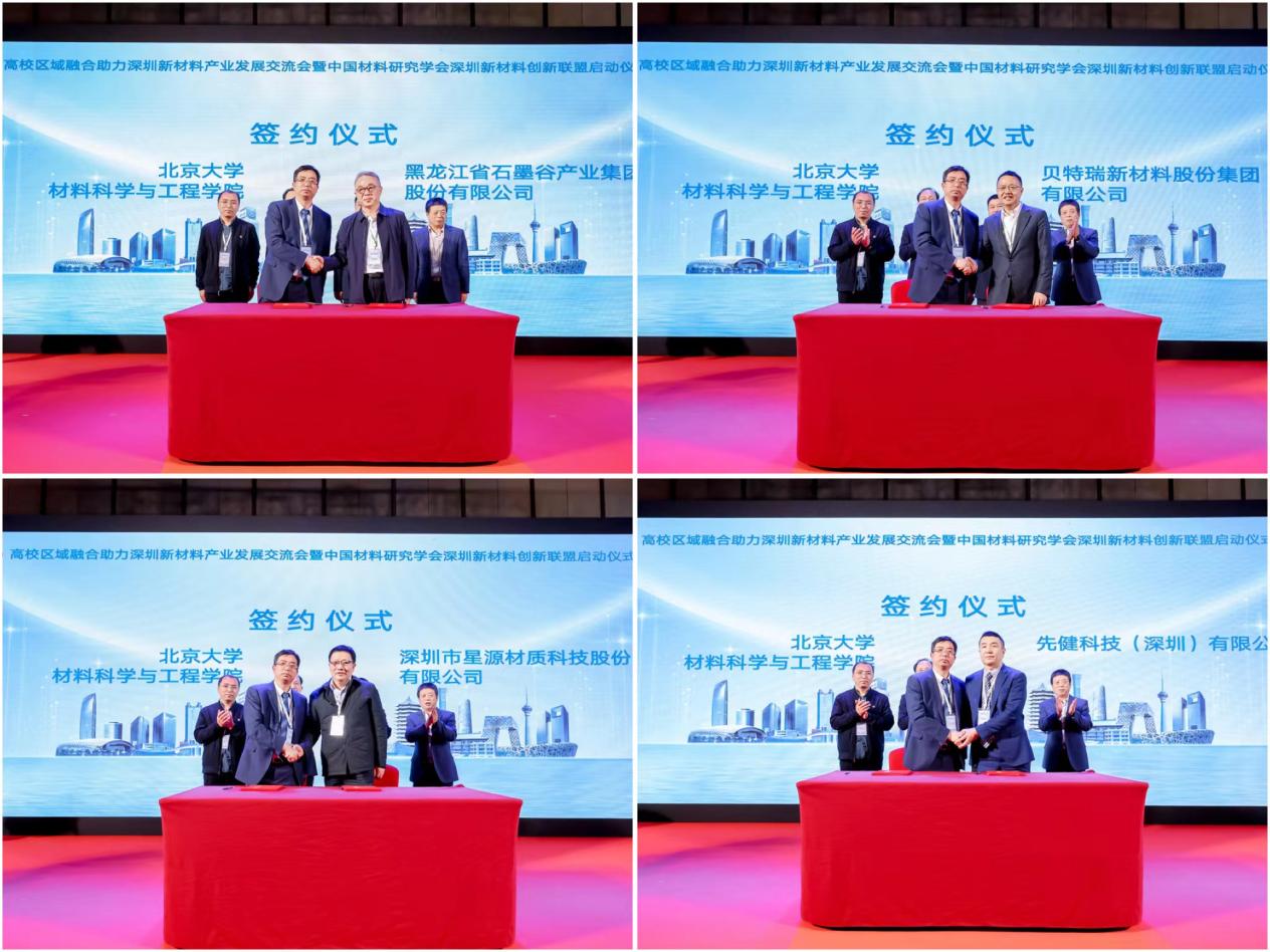 校企合作签约仪式上,北京大学材料科学与工程学院与黑龙江省石墨谷产业集团股份有限公司、贝特瑞新材料股份集团有限公司、深圳市星源材质科技股份有限公司、先健科技(深圳)有限公司签署了合作备忘录。根据备忘录,校企双方将在人才培养、学科建设、科学研究等方面展开深入合作。