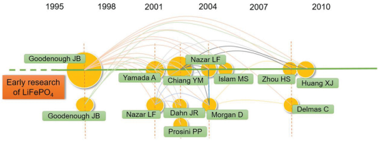 图3. 用于锂离子电池的LiFePO4的发展里程碑图
